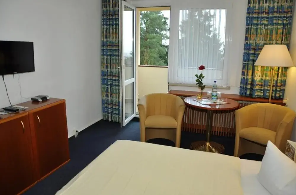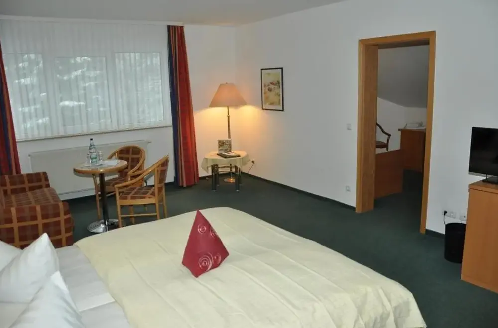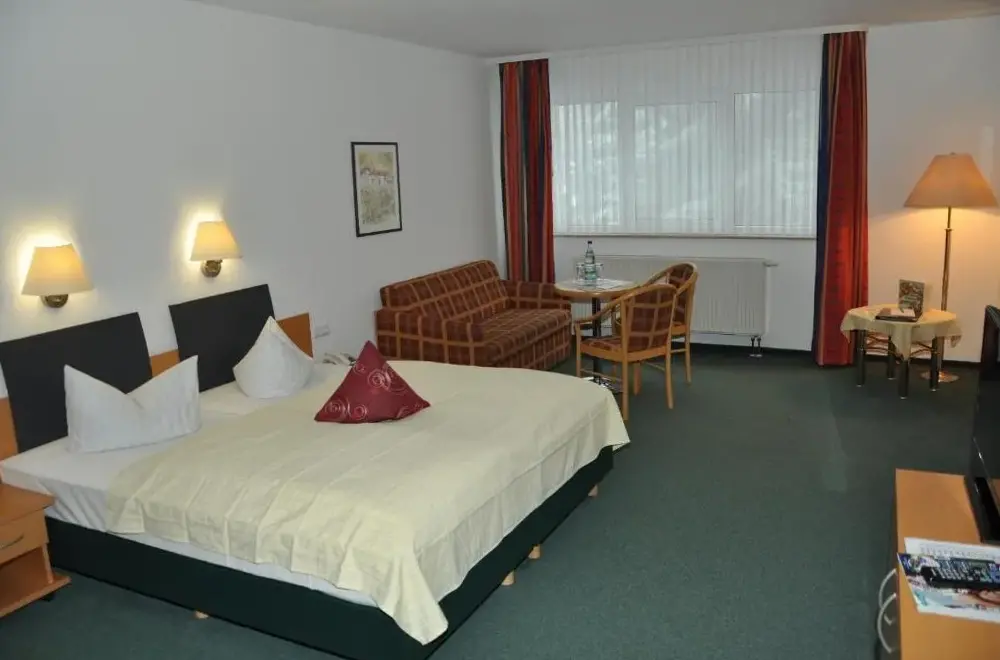 Hotel Am Wald -GARNI- er et 3-stjernede hotel placeret i Elgersburg, en lille by i Thüringer Wald. Hotellet tilbyder en stilfuld opholdsplads med rolige værelser og lejligheder udstyret med lyse træmøbler samt moderne badeværelser. Der er gratis trådløs internettforbindelse tilgængelig over hele hotellet. Besøgende kan nyde wellnessfaciliteter som sauna og solbadningsarealer. Desuden findes en bowlingbane på stedet. Hotellet ligger nær populære turistattraktioner såsom Rennsteig-vandrerute og cykelsti Gera. I omegnen af Elgersburg kan man besøge Elgersburg Slot. De fleste gæster omtalte det venlige personal, renheden og den rigtige morgenmad.